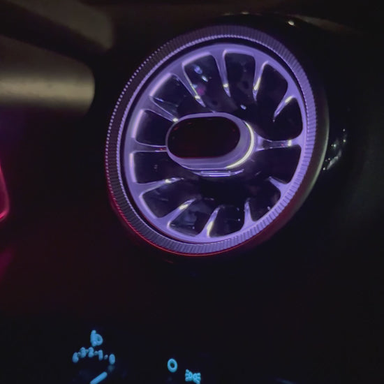Each air vent features an integrated Bluetooth RGB lighting module, allowing you to control the lighting directly from your smartphone. Using the Bluetooth connection, you can select from a wide range of colours, adjust brightness levels, and choose a static colour or smooth colour gradient to suit your personal preference or driving mood.