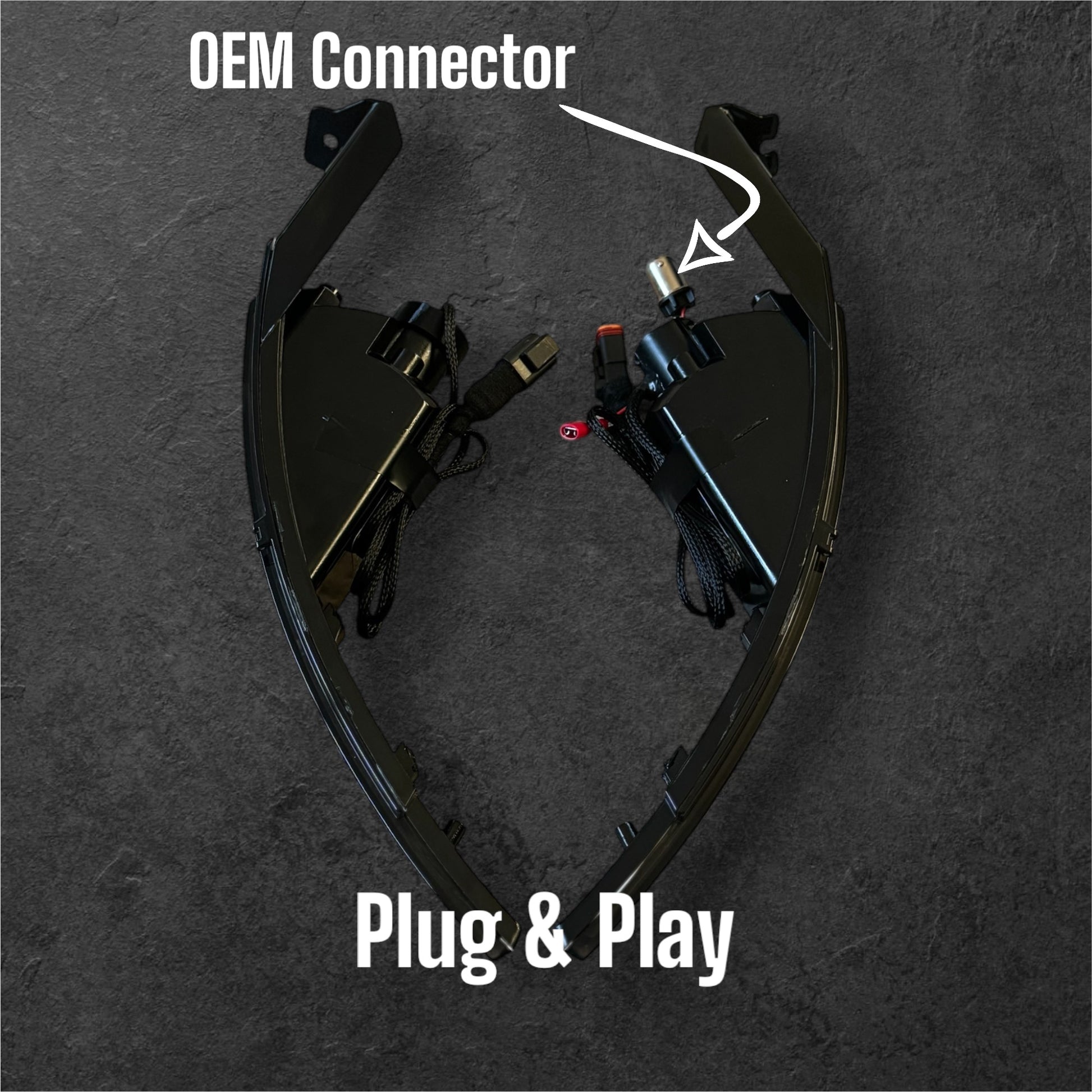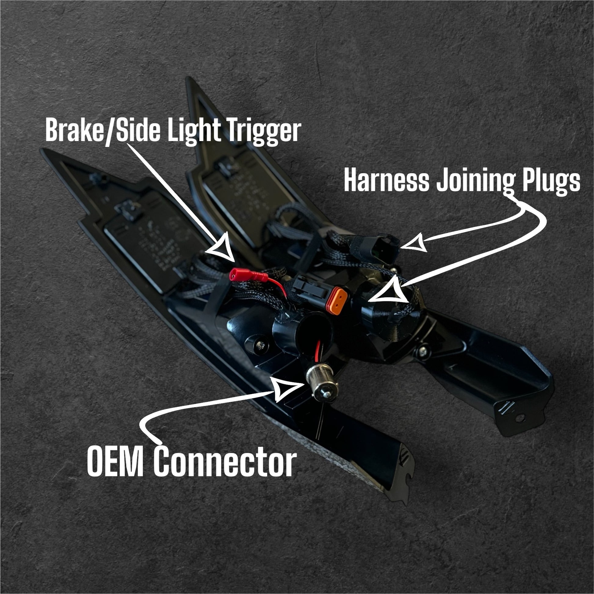 Brake Light DISCLAIMER: Whilst this feature is very cool and well received they are intended for show/track use only due to the grey area of how legal using fog-lights as brake lights are. If used on main roads it is done so at your own risk, we at AGM Customs do not take any liability for any consequences if caught using these features publicly on main roads. They can be easily enabled/disabled from behind the taillights via a plug and play application.